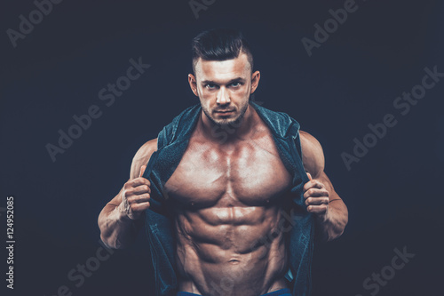 © satyrenko, Fototapeta premium strong athletic man on black background