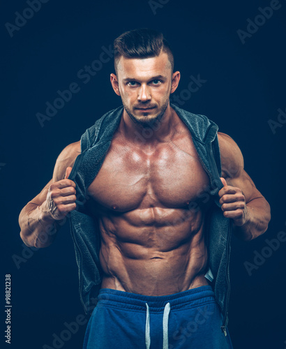 © satyrenko, Fototapeta premium strong athletic man on black background
