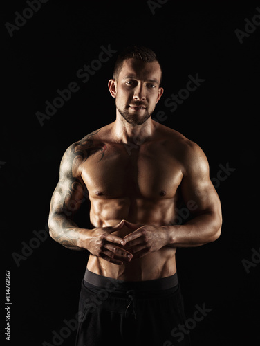 © Prostock-studio, Fototapeta premium Strong athletic man showes naked muscular body