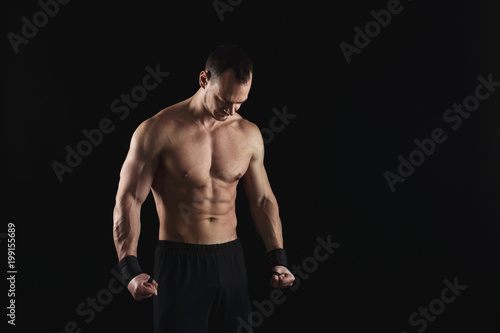 © Prostock-studio, Fototapeta premium Strong athletic man showes naked muscular body