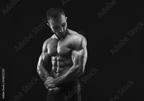 © Prostock-studio, Naklejka premium Strong athletic man showes naked muscular body