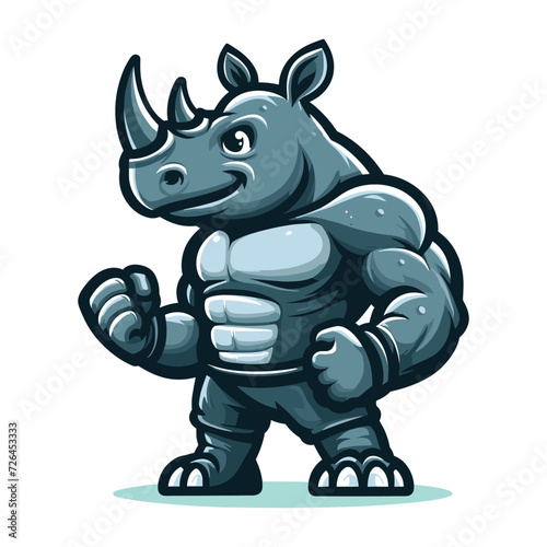 Fototapeta premium Strong athletic muscle body rhinoceros wild animal mascot design vector illustration, logo template isolated on white background