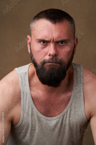 Obraz premium Strong bearded man. Portrait of a handsome man with a beard