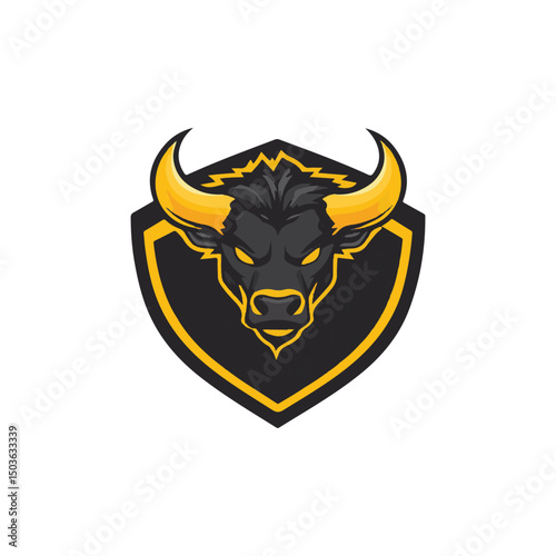 © NURUL, Fototapeta premium Strong Bull Shield Mascot Logo Vector