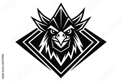 Obraz premium Strong eagle head within sharp diamond frame stands out in bold silhouette