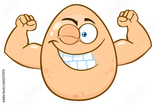 Obraz premium Strong Egg Cartoon Mascot Character Winking And Showing Muscle Arms. Hand...