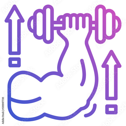 © Iftachul, Obraz premium strong hand with dumbbell line gradient icon. Can be used for digital product, presentation, print design and more.