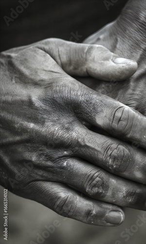 © MD, Fototapeta premium strong handshake with rough textured hands in black and white