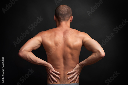 © Slaweek, Fototapeta premium strong man holding his back with hands
