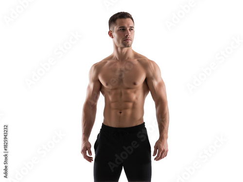 Fototapeta premium Strong man showcasing athletic physique in a studio setting during a fitness...