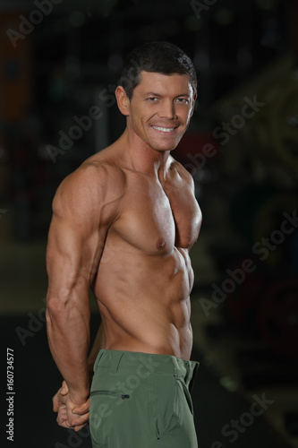 © lenblr, Fototapeta premium Strong man with attractive muscular body
