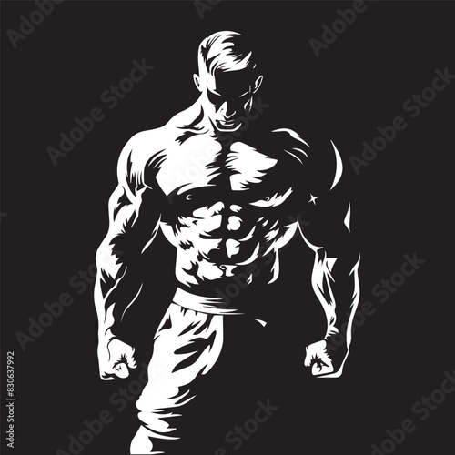 Fototapeta premium strong muscular man gym exercise vector in black and white for print in high quality