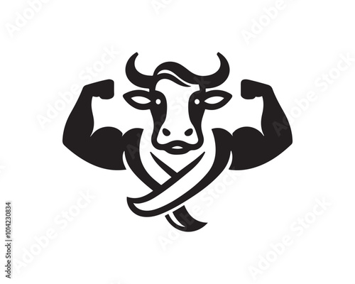 © Mamun360, Fototapeta premium Strong powerful cow gym logo vector illustration. Cow graphic silhouette black and white.