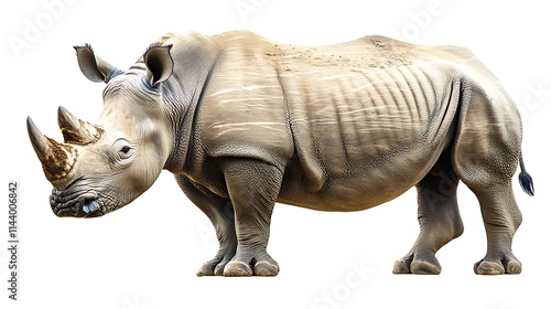 © heinng, Fototapeta premium Strong Rhino Closeup Photo Standing Calmly Isolated on White Background. AI Generated