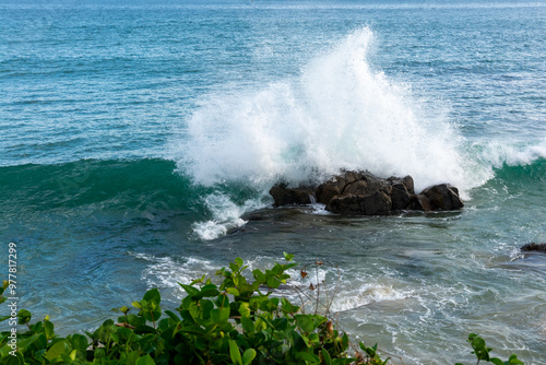 © Thales, Fototapeta premium Strong sea waves breaking on a rock at the seaside. Live nature. Environment.
