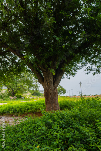 © Dilipkumar, Fototapeta premium Strong tamarind tree base full of green