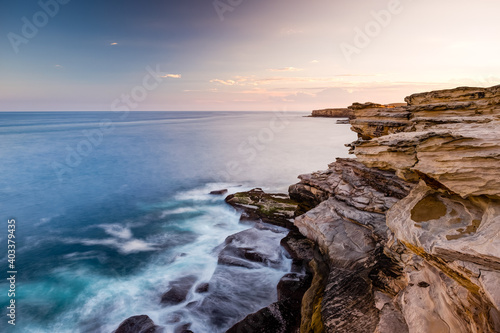 © Michael, Obraz premium Strong Wave Crashing Water Edges in Kamay Botany Bay National Park