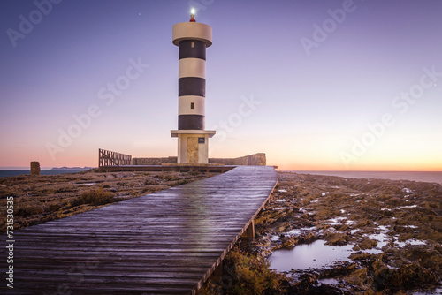 © Tolo, Fototapeta premium strong waves on the Puntassa lighthouse in Colònia de Sant Jordi, ses Salines, Mallorca, Balearic Islands, Spain