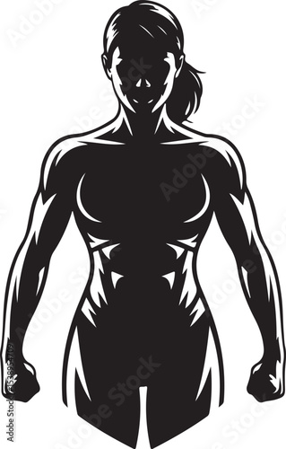 Fototapeta premium Strong Woman Silhouette Vector Illustration Fitness Bodybuilding Athlete