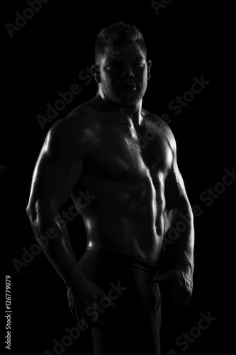 © pucko_ns, Naklejka premium Strong young man showing his muscles and exercise