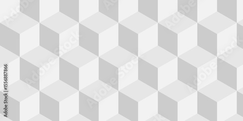 Obraz premium Structure geometric white block box cube seamless pattern grid vintage surface triangle web monochrome square texture white overlap cubic background.