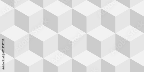 Fototapeta premium Structure minimal abstract white block box cube seamless pattern grid vintage surface triangle web monochrome square texture white background.