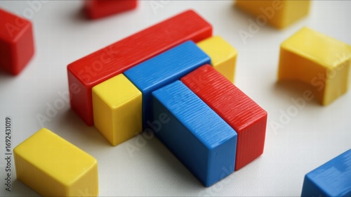 Obraz premium Structured Red, Yellow, and Blue Plastic Blocks on White Surface