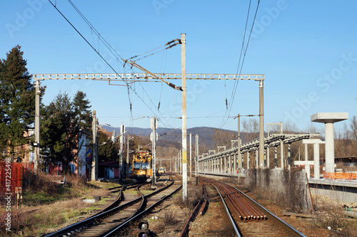 © Rechitan Sorin, Obraz premium Structures of a new railway platform under construction in Lipova, Romania, Europe