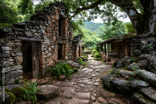 © john, Fototapeta premium Structures of the deserted village Biribiri, Biribiri State Park, Minas Gerais, Brazil