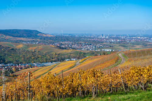 Naklejka premium Struempfelbach - Vineyards at Weinstadt region - beautiful landscape in autum...