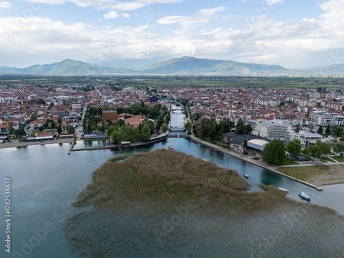 © Alp Galip, Fototapeta premium Struga Town aerial View in North Macedonia