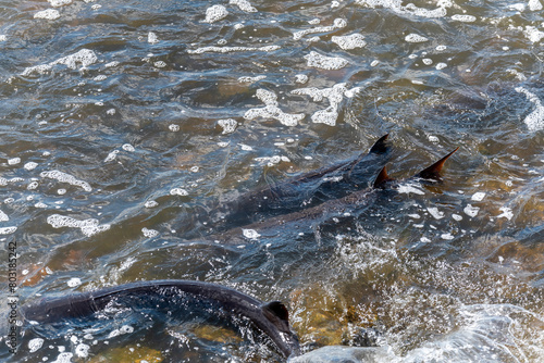 © Barbara, Obraz premium Strugeon Spawning In Spring At The Fox River Dam And Rapids In De Pere, Wisconsin