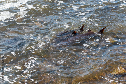 © Barbara, Obraz premium Strugeon Spawning In Spring At The Fox River Dam And Rapids In De Pere, Wisconsin