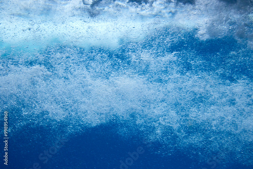 Fototapeta premium Struktur von sprudelndem Wasser hinter einer Glasscheibe