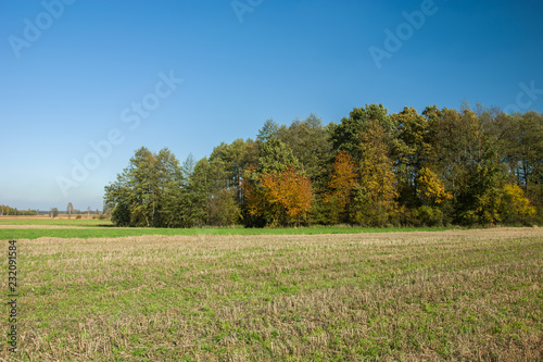 Fototapeta premium Stubble on the field and autumn forest