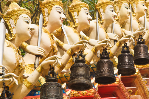 © satin_111, Fototapeta premium Stucco angels with metal bells.