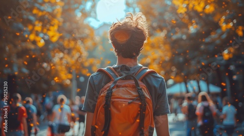 © Alex, Obraz premium Student Celebrating Farewell to Summer - Back to School Concept Generative AI
