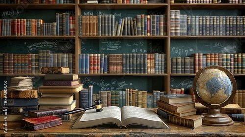 © MaiHuong Studio, Obraz premium student council background with agendas and meeting notes, a gavel icon on a table, a student council concept banner design
