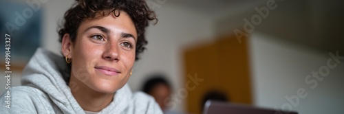 Fototapeta premium Student engaged in virtual study group session for collaborative learning