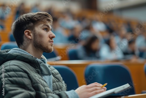 © Vibu design gallery, Fototapeta premium Student in industrial management program takes quizzes and exams.