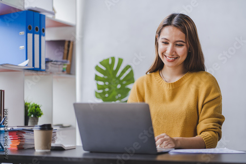 Fototapeta premium student learning using laptop meeting online classes Educational courses or...