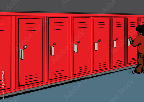 © theblackrhino, Fototapeta premium Student Opening Red Locker