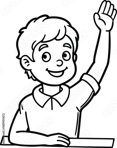 Obraz premium student raising hand coloring page