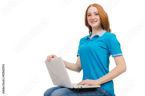 © Elnur, Naklejka premium Student with laptop isolated on white