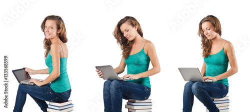 Fototapeta premium Student with netbook sitting on books