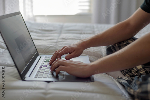 © Kristen, Fototapeta premium Student working on laptop in morning light