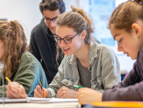 Obraz premium students engaged in collaborative learning at a desk