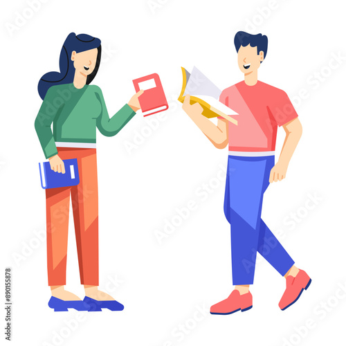 © Vectors Market, Obraz premium Students exchanging books with each other, flat illustration
