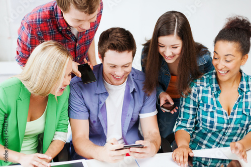 © Syda Productions, Fototapeta premium students looking into smartphone at school