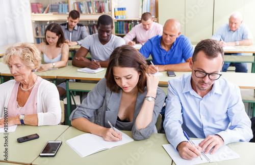 Obraz premium Students mixed age listening task for exam
